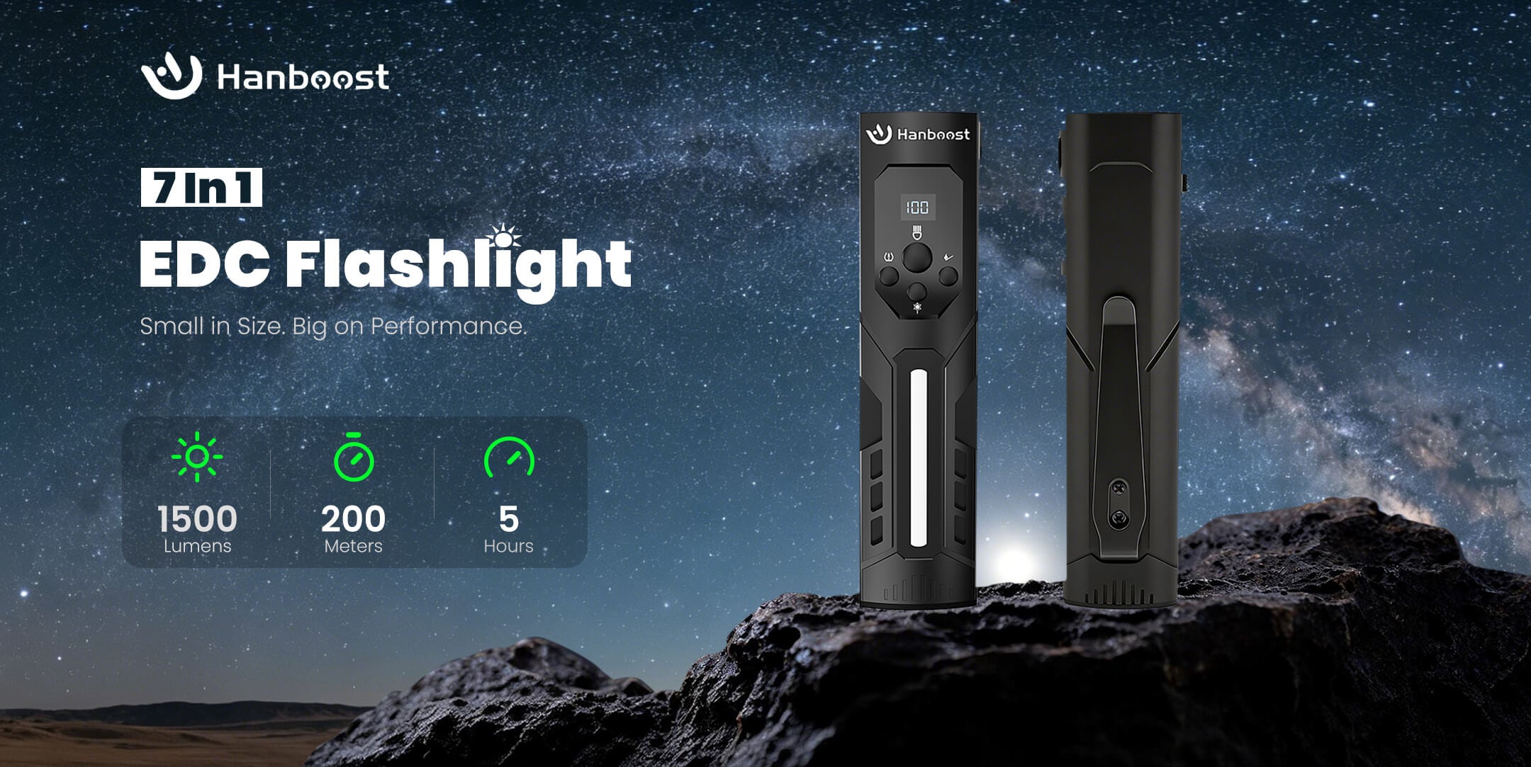 The Hanboost EDC Flashlight is the compact tool that punches far above its size. Built from aerospace-grade aluminum with dual-layer ceramic protection, it's tough enough for job sites, smart enough for everyday carry, and bright enough to light up the night at 1,200 lumens.