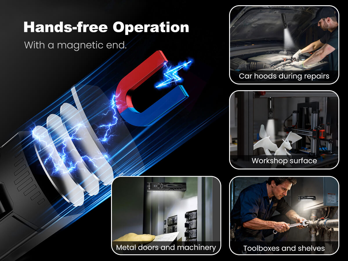 Built with a powerful N52 neodymium magnet, this flashlight securely attaches to metal surfaces, turning any workspace into a hands-free lighting set