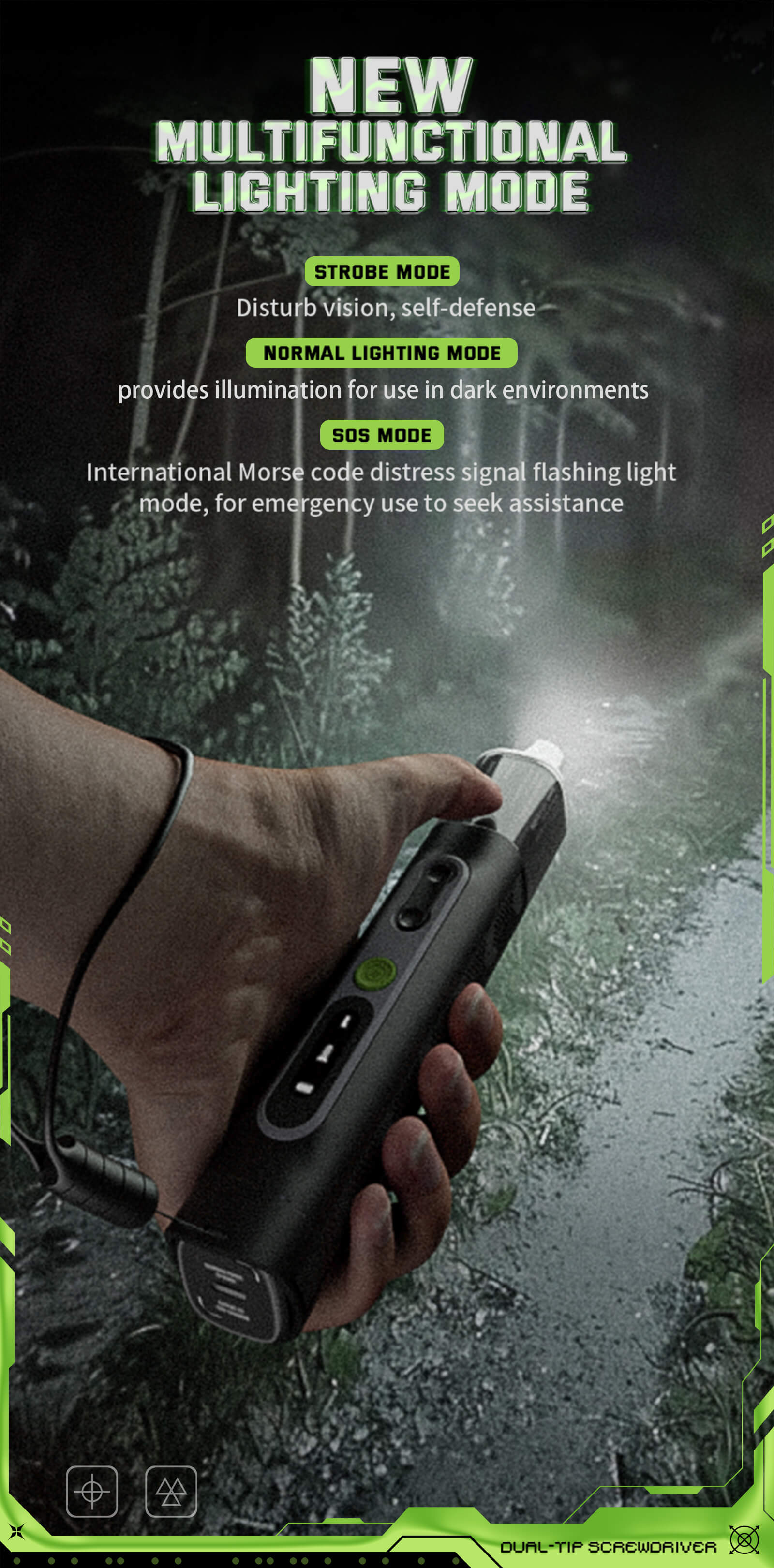 A single button controls multiple functions, including torque settings and 3 lighting modes, you can select from illumination mode for better visibility, SOS mode for emergencies, and strobe mode for alerting others. This all-in-one button simplifies your workflow and enhances functionality.