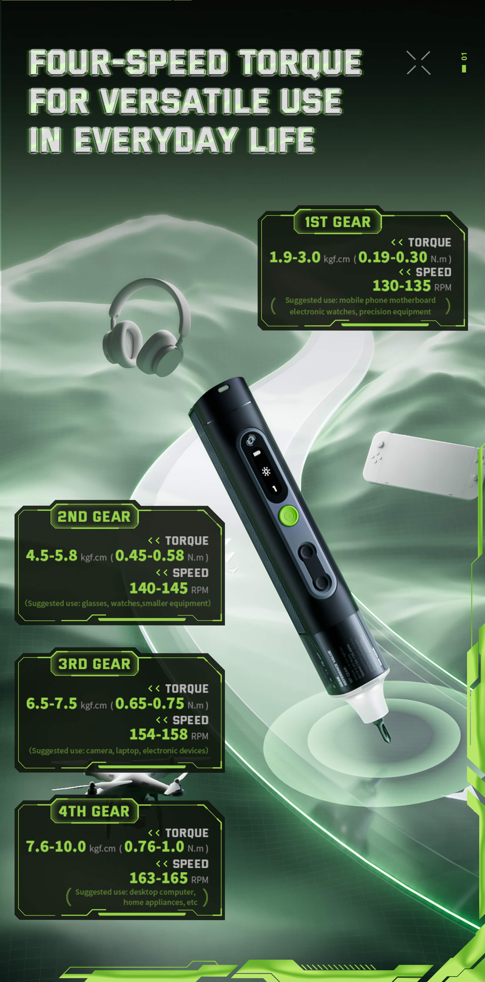 Equipped with 4 distinct torque levels, this screwdriver allows you to handle a wide range of tasks effortlessly. From delicate projects to more demanding jobs, you can adjust the torque to suit any situation, ensuring precision and control.
