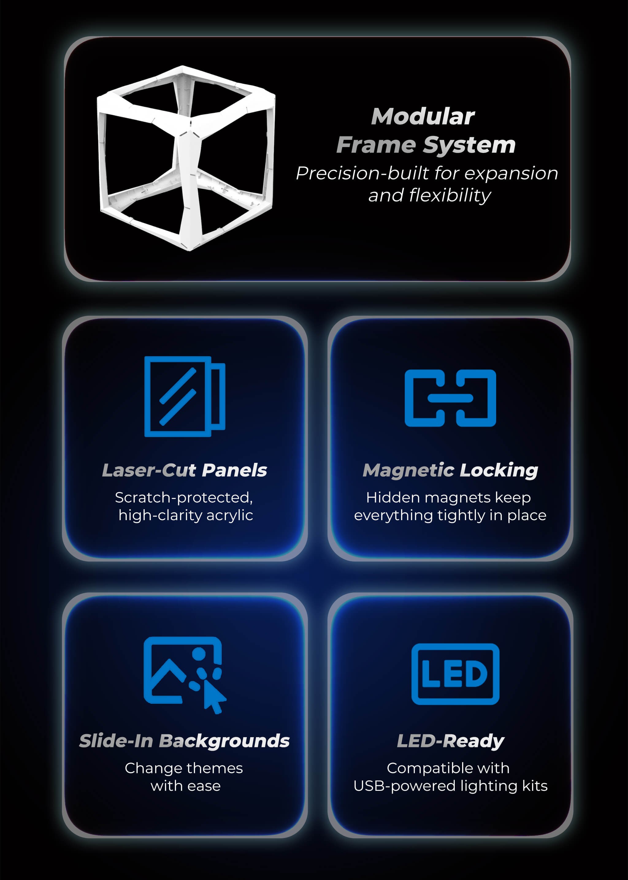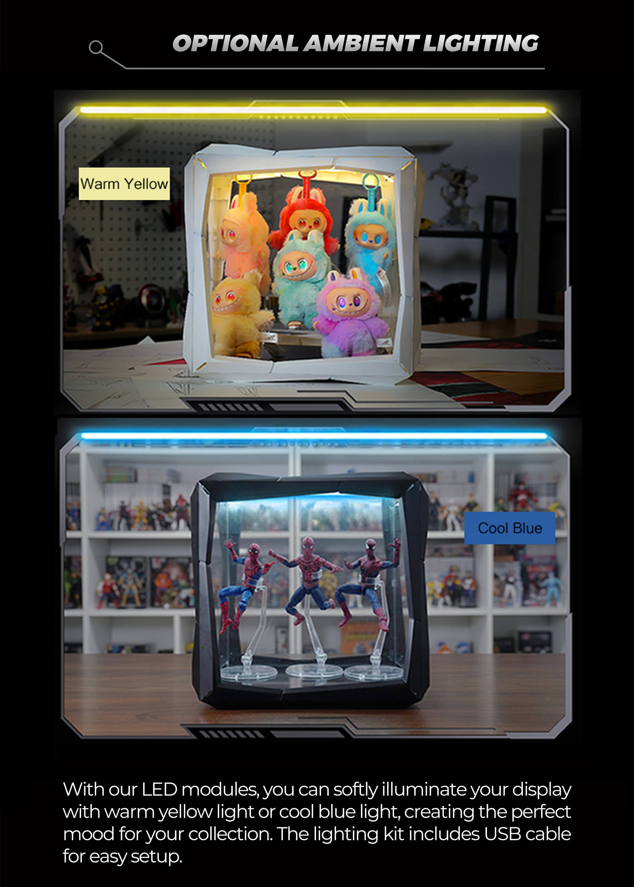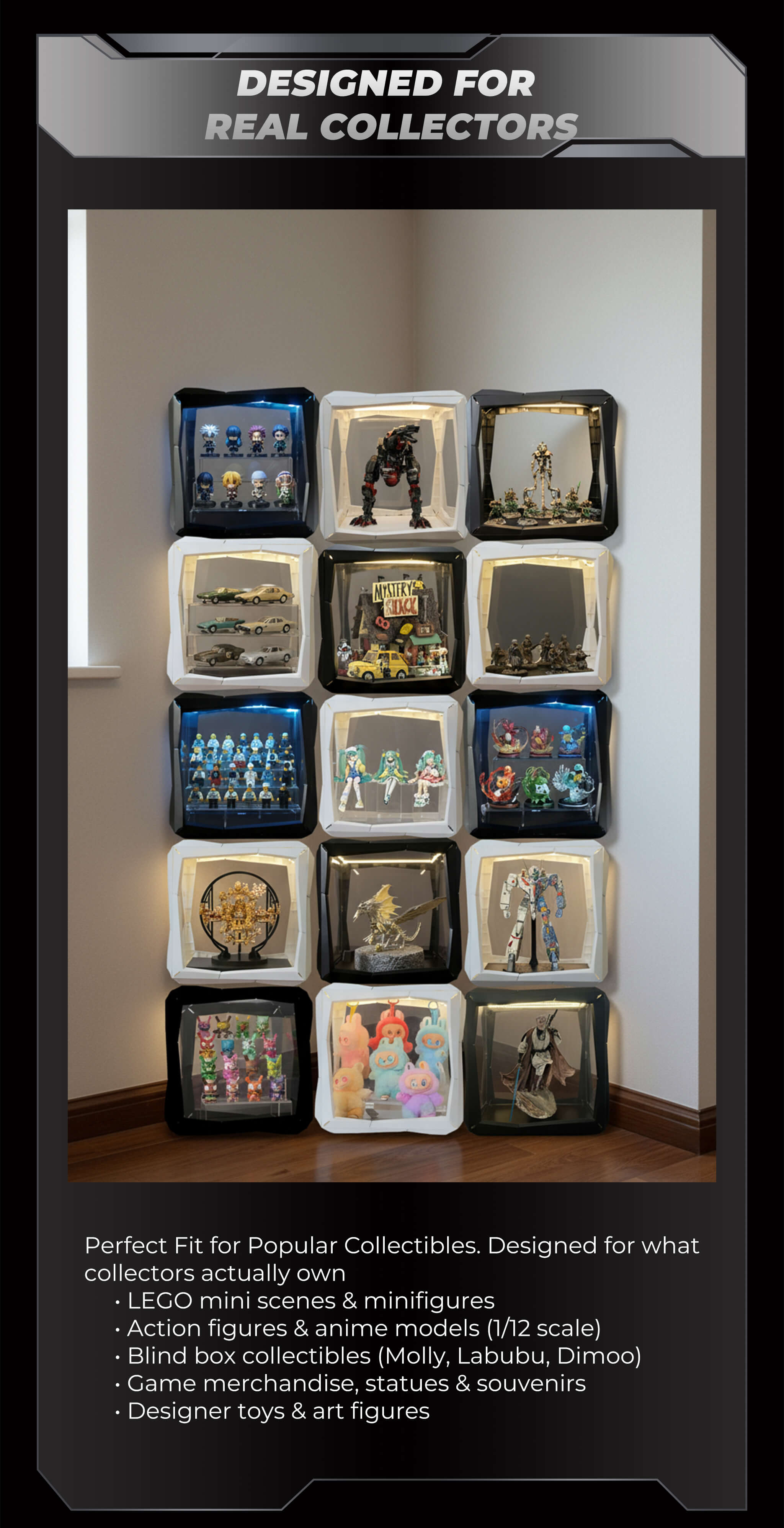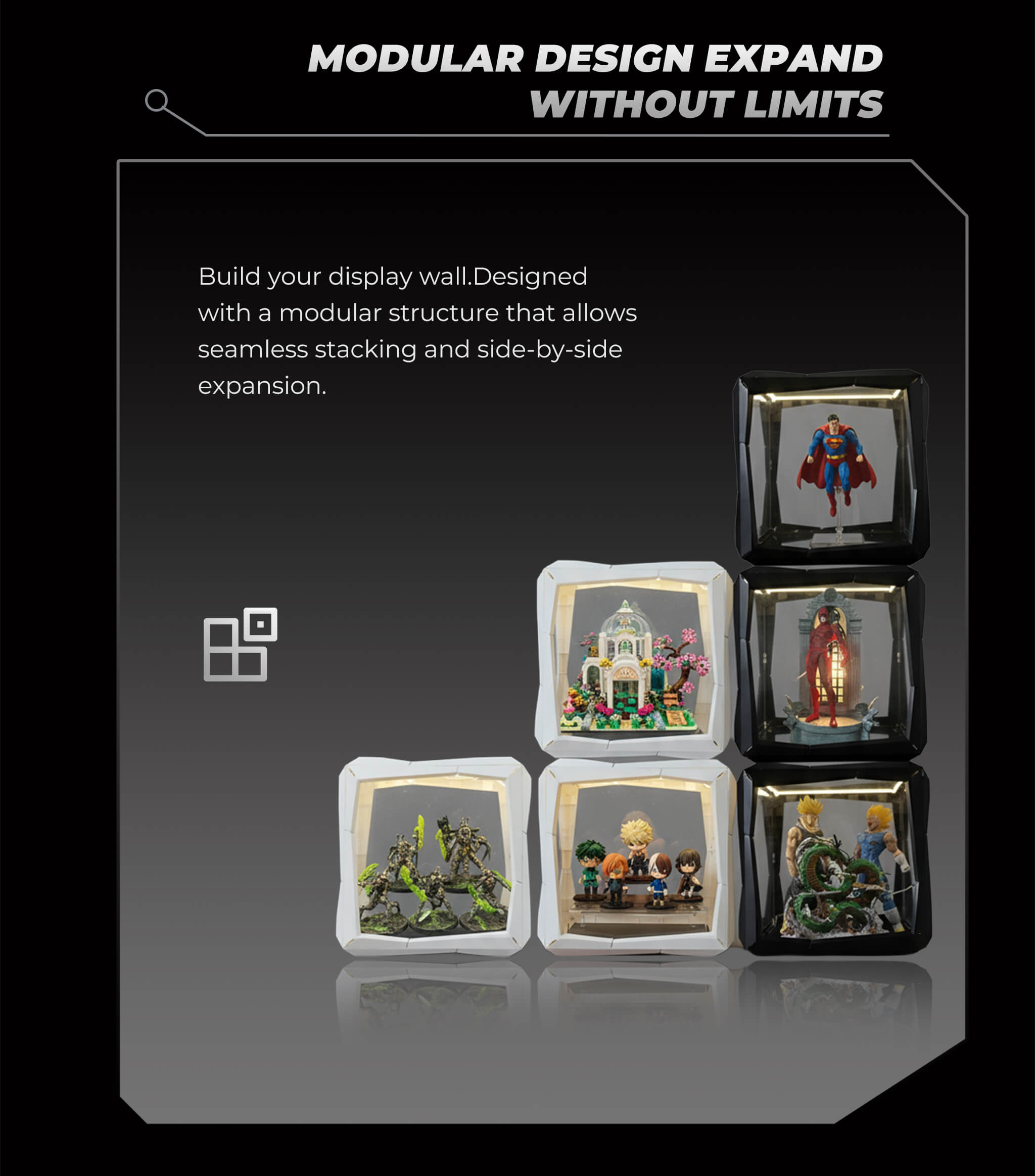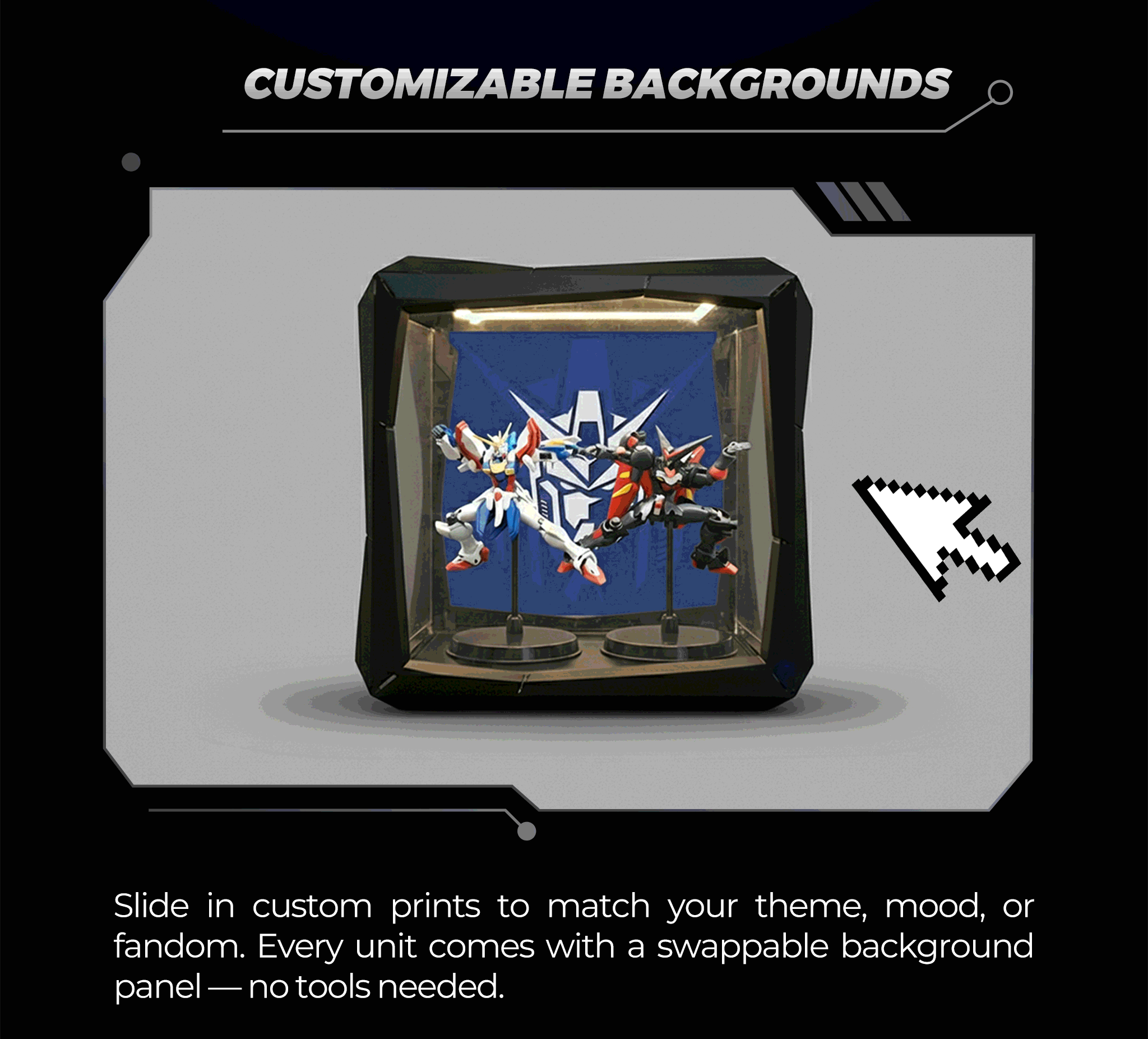 Effortlessly swap backgrounds to match any fandom and expand your display without boundaries. Our system provides the perfect, customizable home for every piece of your collection.